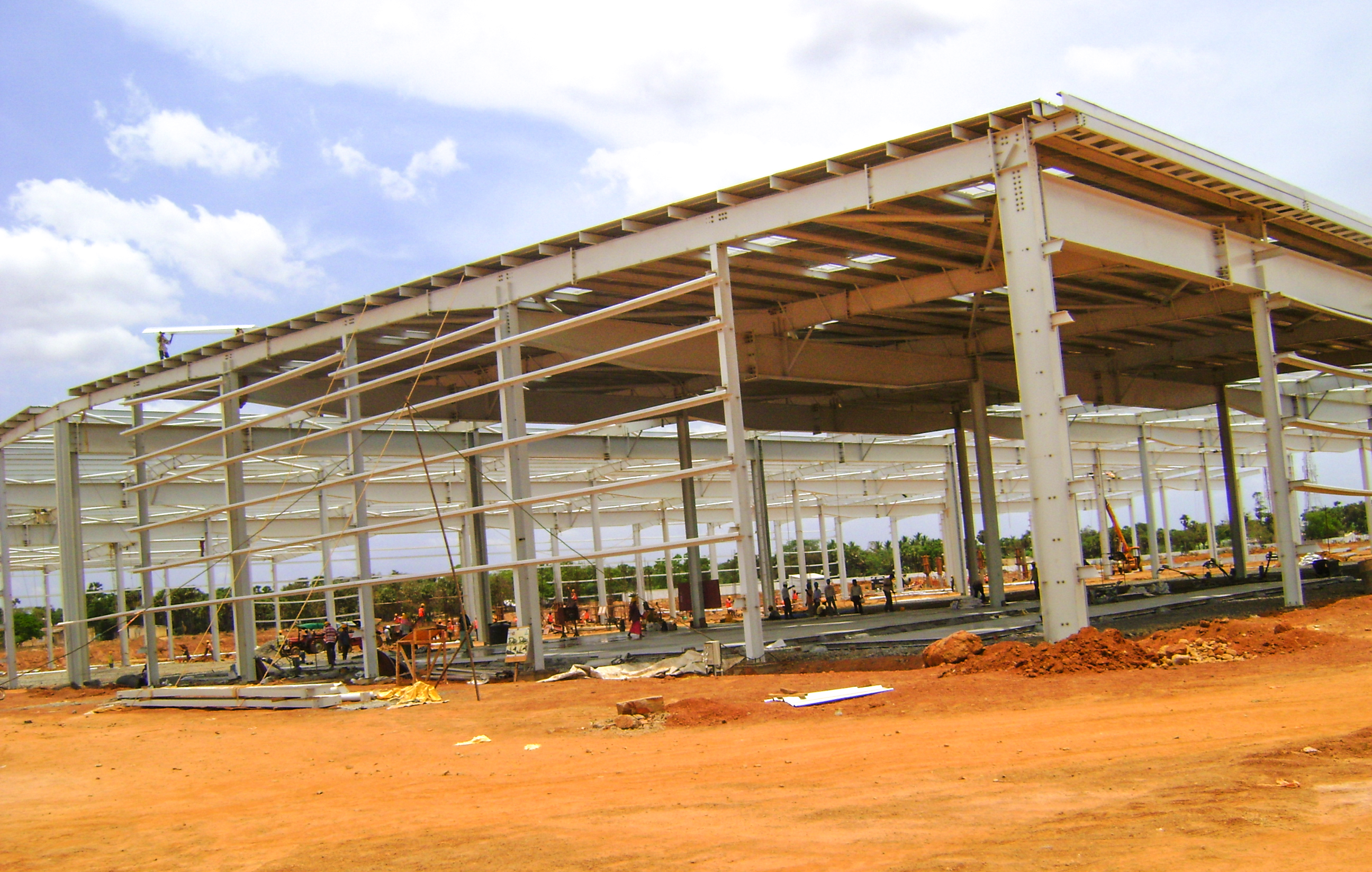 We are expertise in designing,fabrication and installation of PEB structures.The PEB (Pre-Engineered Building) consists of a complete steel frame building system, with pre-designed components to best suit the unique customer requirements.The final product is a complete building shell with sub structural systems including mezzanine floors, crane systems, canopies, fascia and interior partitions.The PEB system offers multiple advantages to the end-user; the most notable are low initial investment, fast construction time, low maintenance cost, large clear spans, infinite choice of layouts, inherent resistance to earthquakes, ease of expansion and unique attractive appearance.